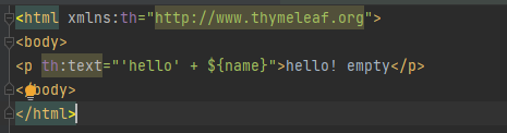 4. 컨트롤러 model의 키 값이 "'hello' + ${name}"의 값이 매핑되고, hello! empty의 자리에 위의 값이 치환되어 적용 됨