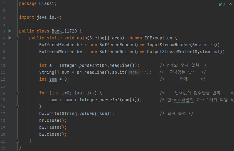 [11720] 숫자의 합