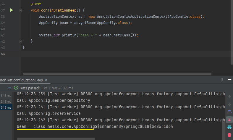 - AppConfig의 빈을 조회해서 클래스 정보를 출력해보면 아래와 같이 나오는데,