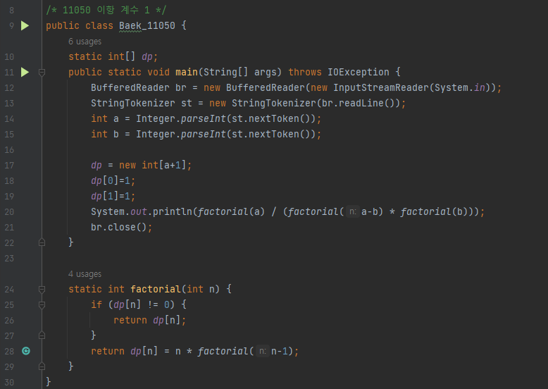 [11050] 이항 계수1