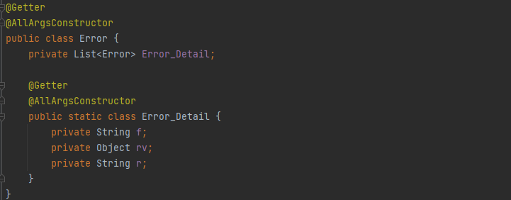Error는 에러 정보만 담는 클래스이기 때문에 필드의 에러 정보를 담는 Error_Detail클래스 역시,