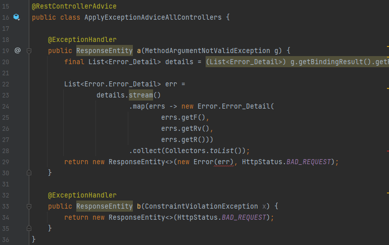 - 유효성 검증에 실패시 내부적으로 던져진 예외인 MethoddArgumentNotValidException을 handleException() 이 받음
