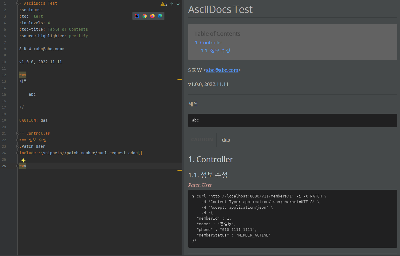 API 스니핏 문서들을 이용한 API 문서 생성 (index.adoc)