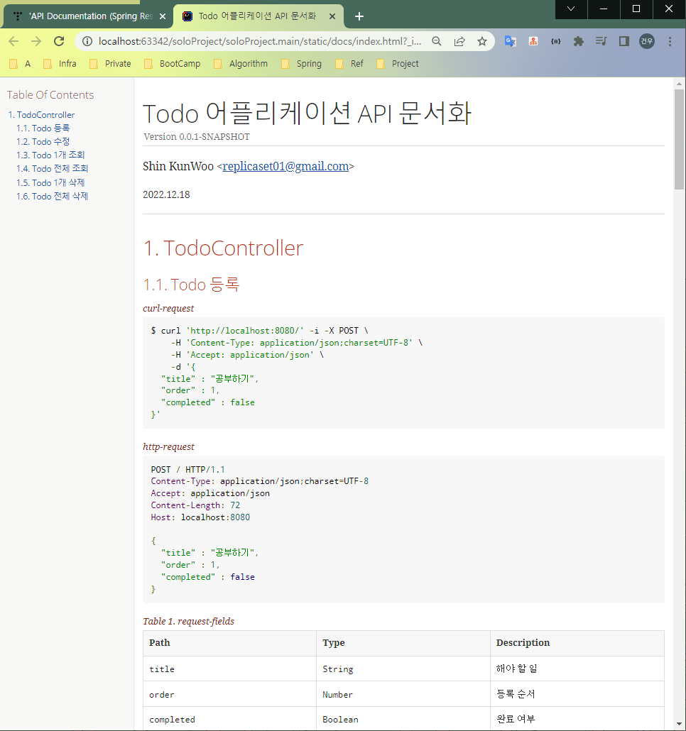 = Todo 어플리케이션 API 문서화