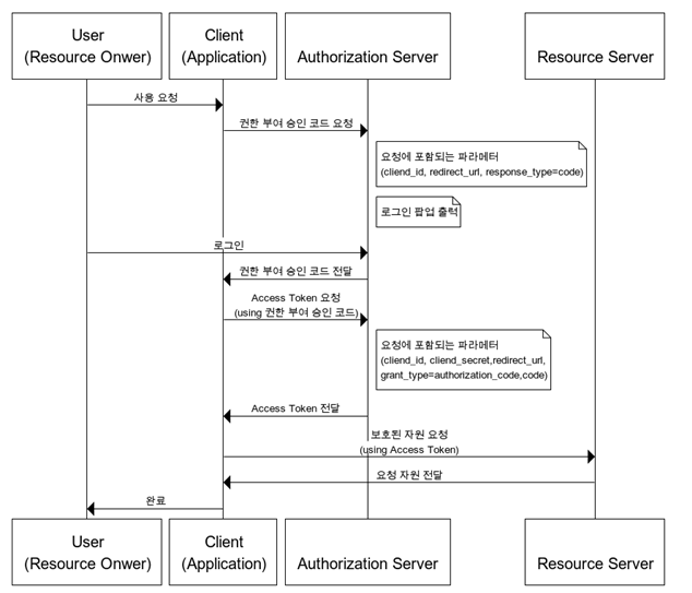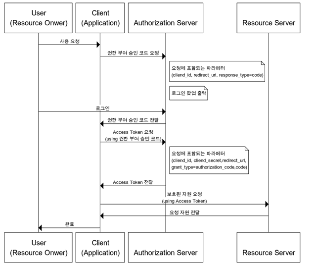 - Authorization Server -> Client로 권한 부여 승인코드 전달