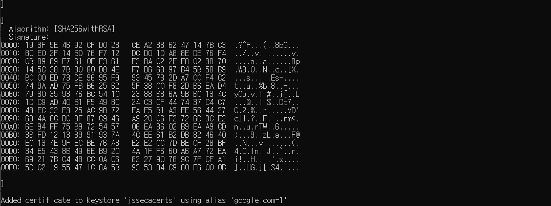 - java -cp ./ InstallCert <인증서를 받아올 호스트명 입력>