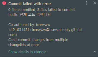 IntelliJ의 Code With Me 기능으로 3인 이상 공동작업 후 커밋을 했는데 실패하는 문제 발생