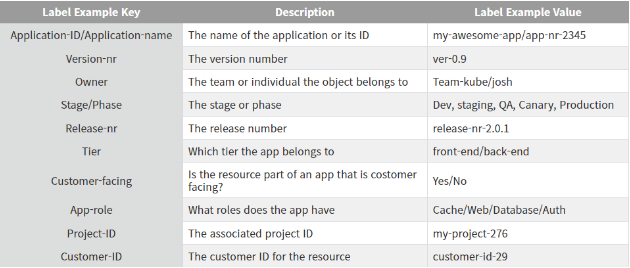 환경이나 고객 & 팀 & 소유자 & 릴리즈 버전에 따라 그룹화 하는 다양한 레이블 규칙 개발 가능 - 리소스를 생성할때 레이블을 무조건 지정해서 사용하기
