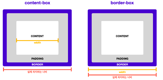 - content-box는 박스의 크기를 측정하는 기본값입니다. 그러나 대부분의 레이아웃 디자인에서 여백과 테두리를 포함하는 박스 크기 계산법인 border-box를 권장합니다.