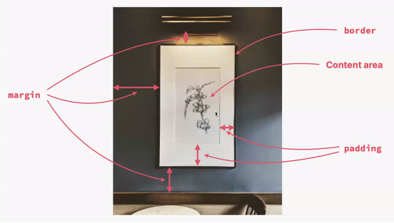border(테두리)를 기준으로 padding(안쪽 여백)과 margin(바깥 여백)이 있음