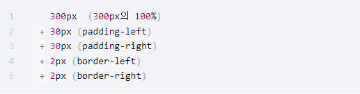 #container의 너비는 300px이 아니라, 324px입니다. 브라우저는 다음과 같은 계산을 실행합니다.