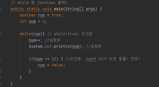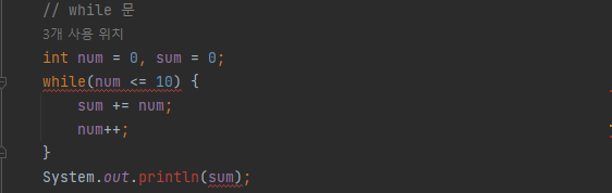 - 조건식이 true일 경우 계속 반복