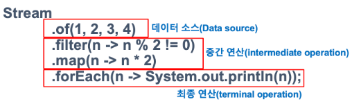 | Stream | java.util.Collection.Stream(), java.util.Collection.parallelSream( ) | 컬렉션 |