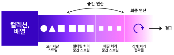 - 연산 결과를 스트림으로 반환하기 때문에, 연속해서 여러번 수행 가능