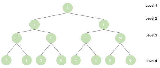 - Level = root(A) = 1 B,I = 2 ...