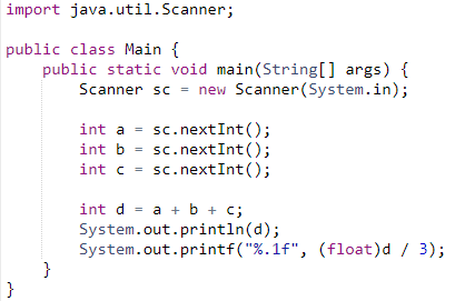 [1046] 정수 3개 입력받아 합과 평균 출력