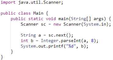 - 8진수 : Integer.parseInt(String s, 8);, return : int