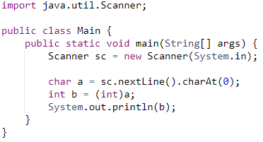 [1036] 영문자 1개(아스키코드) 입력받아 10진수 출력