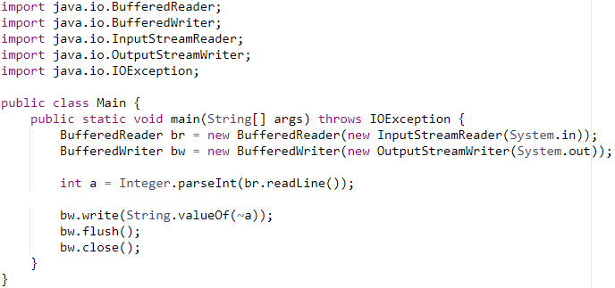 [1040] 정수 1개 입력받아서 부호 바꿔 출력