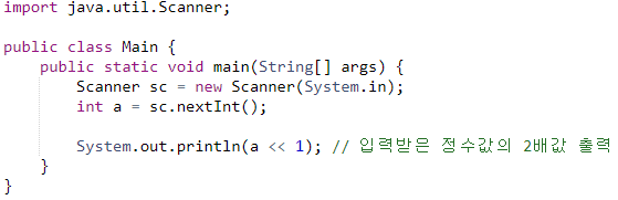[1047] 정수 1개 입력받아 2배 곱해 출력 (시프트연산자 사용)